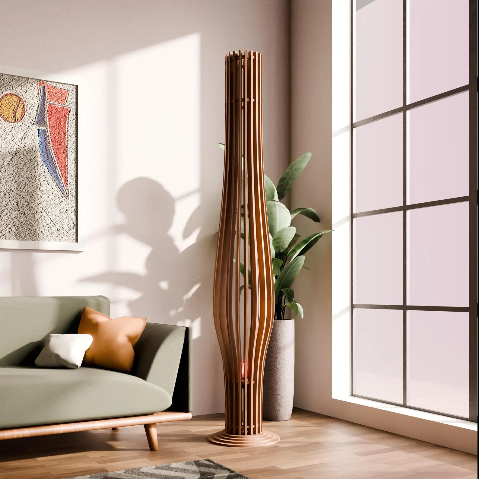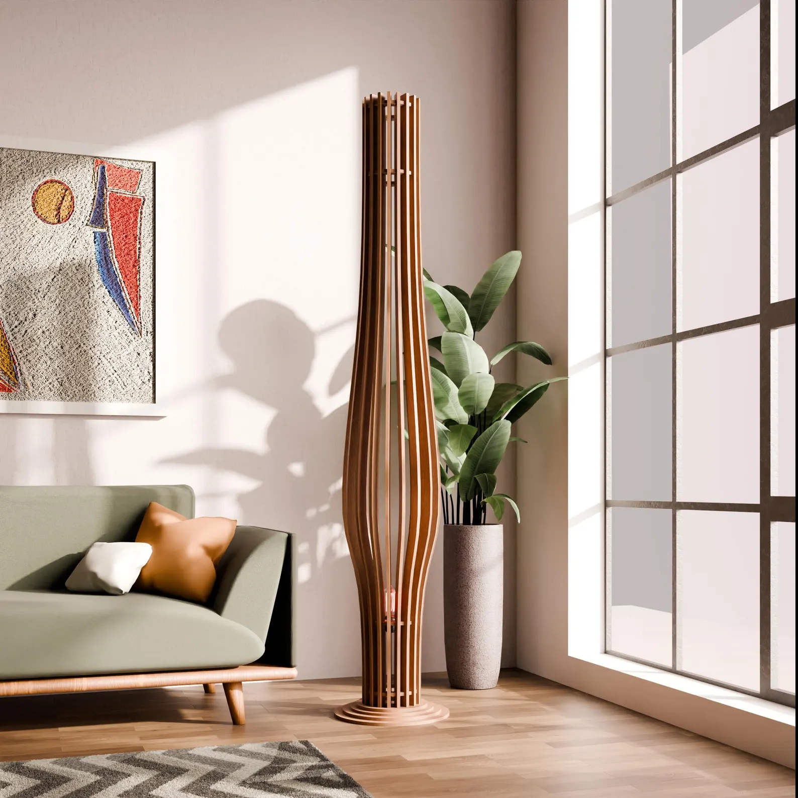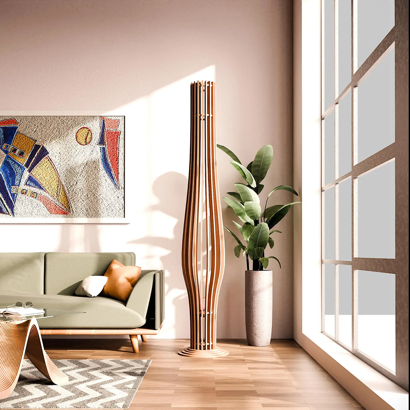 Light filters through the vertical gaps, creating soft ambient glow and dynamic shadow lines across the wall.
