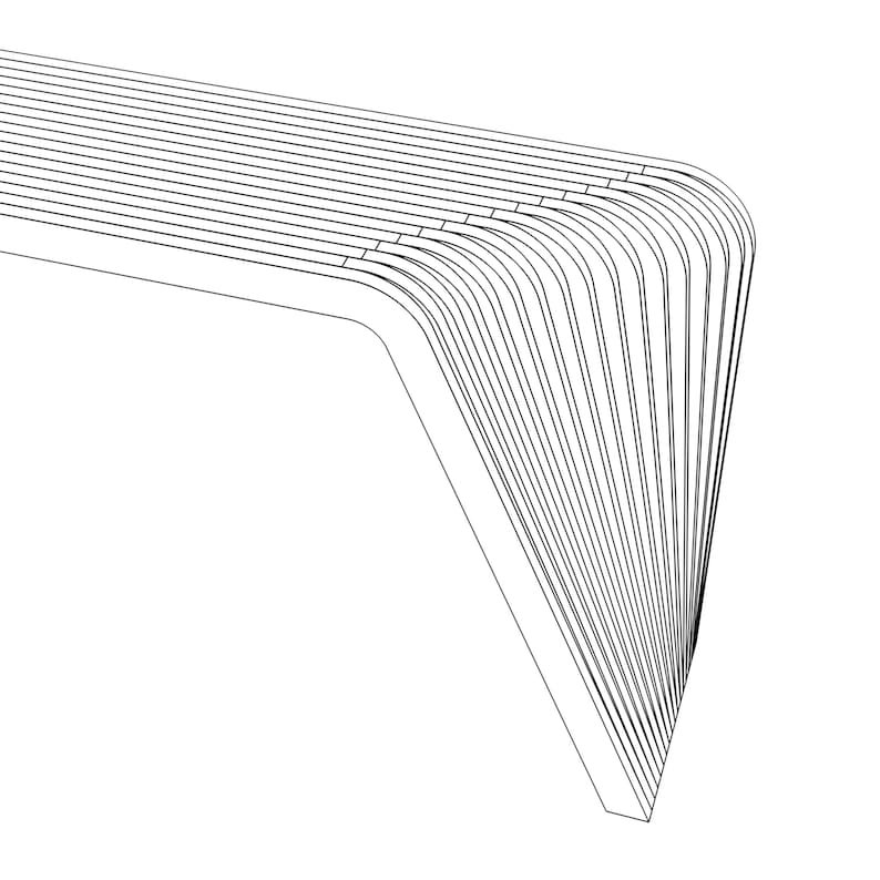 A continuous curved frame forms both support and surface in one gesture.